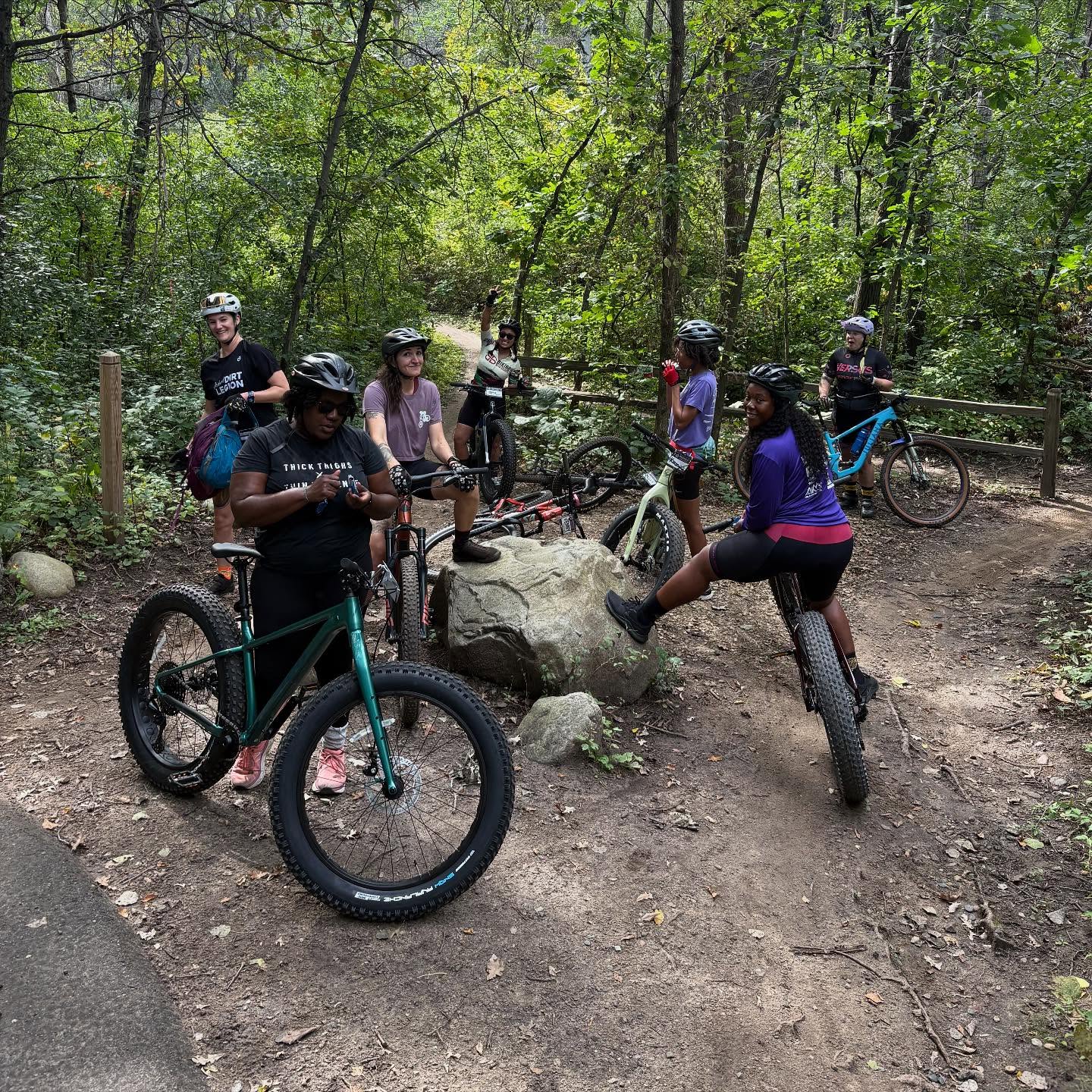 I thought road biking was bad ass until @lostinmpls @_bettynuggs and their team from @midwestdirtlegion took a group I gathered on a mountain bike adventure through the woods. MTB biking was a challenge. But the clinics lead prepared us for the turns, stump riding, and adrenaline that comes from riding between narrow trees at 15mph! Lol It was so damn fun. MTB actually forces you to get up out your saddle and be interactive with your bike the whole ride. Your engaging core, obliques is surfing, and legs are feeling the strength in your stance. The best part about MTB is the scenery. You’re deep in the woods and you don’t have the distraction of pulling out your phone because you have to ride safe. I wish I could show you what we saw and give you the feel of what we went through via screen. Next time proper cameras will be there for sure. @lostinmpls thank you and your team so much for coming out with patience, personality, and full of knowledge of this amazing sport. We see your passion and it’s so inspiring what you do for yourself and others. Yall are so bad ass and I speak for us all when I say we can’t wait to do this again. @nowbikes I’m so thankful for your partnership. Because of the fleet you provide we’re able to do rides like this. If you were able to join us for a clinic/ride with us comment below how the experience was for you! If you’ve MTB before what you love most about it? Would newbies give this a shot? #bikingwithbaddies #bikelife #midwestdirtlegion #fyp #strava #nature #explorempls #mtb #cycling #ride